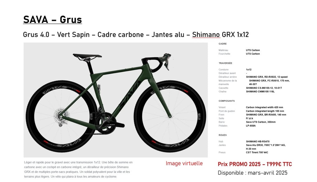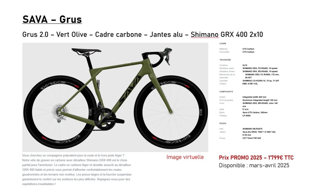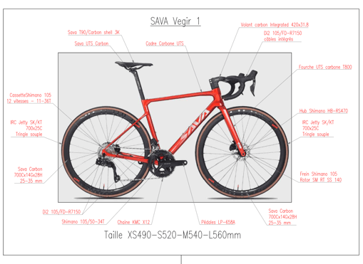 Un bon cadre, des bonnes roues, une fourche de qualité, des composants SAVA fabriqués en interne et un montage avec les systèmes Shimano vous garantissent un vélo qui roule!