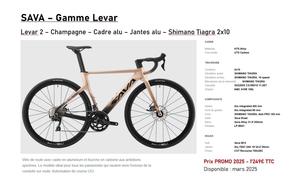 SAVA a fait les bon choix et offre une garantie de 15 ans sur le cadre et deux ans sur tous les autres composants conformément à la loi française.