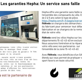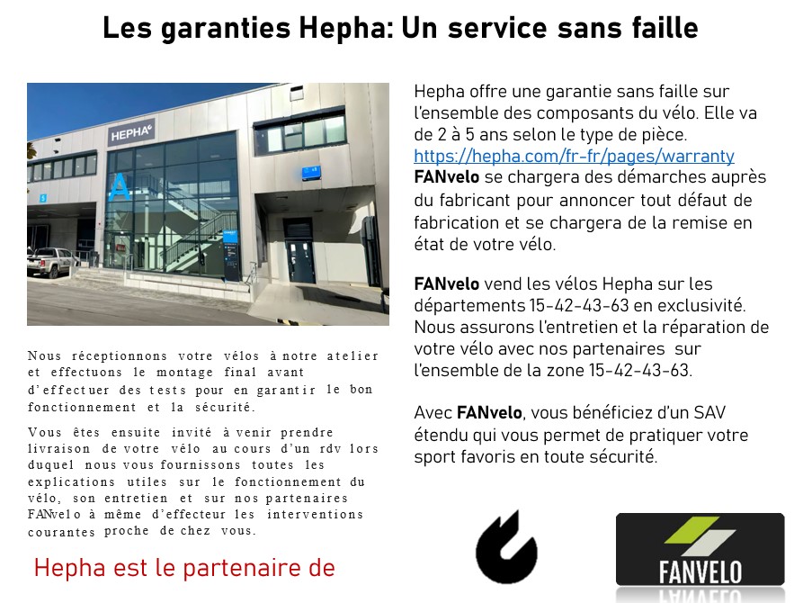 FANvelo assure en exclusivité la vente et la réparation des vélos Hepha sur le département 43 Haute-Loire.
